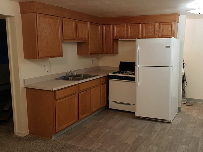Great location in Soldotna. Walk to churches, stores and mall. Four plex with two units upstairs and two units downstairs. Tenants pay only electricity. No smoking, growing, or pets on premises. Dumpster, lawn and plowing provided. Prefer one year lease. The units are two bedroom, small bedrooms, one bath.